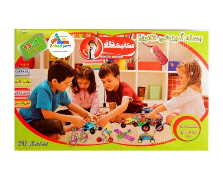 این محصول با کیفیت و زیبا دارای 618 قطعه می باشد این تعداد قطعه برای ساخت 15 اسباب بازی ساختنی متفاوت استفاده می شود . اسباب بازی هایی که در این بسته طراحی شده اند همگی ماشین آلات مختلف هستند . مکانیک خلاق به این موضوع اشاره دارد که کودک شما نحوه کار کردن با پیچ و مهره و پیچ گوشتی را میاموزد . اسباب بازی مکانیک خلاق 618 قطعه از جنس پلاستیکی ساخته شده است و انعطاف بالایی دارد.اسباب بازی های فکر و خلاقانه مثل این اسباب بازی سبب رشد خلاقیت در کودک ، مهارت فکری و تمرین ریاضی می شود.