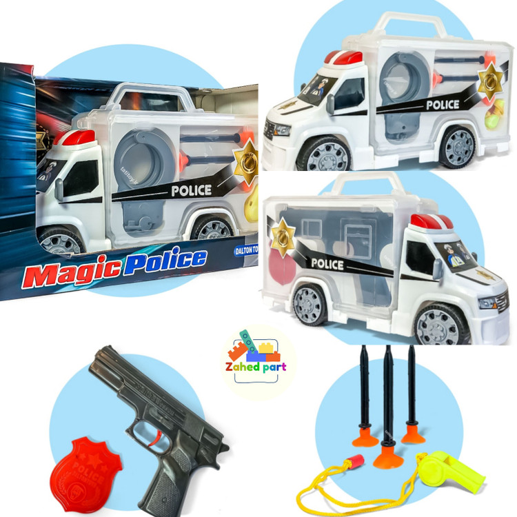 اسباب بازی ماشین پلیس،همراه با تجهیزات پلیسی،مناسب برای بازی و سرگرمی پسر بچه ها.