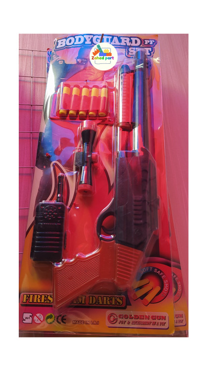 این محصول دارای تیر های فومی بوده که کاملا بی خطر است و میتواندفرزندان شما را ساعت ها سرگرم کند، نحوه مسلح کردن کاملا شبیه به نمونه واقعیست. این کالا بر خلاف محصولات چینی موجود در بازار از مواد درجه یک تولید شده است که سلامت فرزندان شما را حفظ می کند، همراه این تفنگ 5 عدد تیر فومی داخل غلاف و همچنین بی سیم و یک دوربین می باشد.