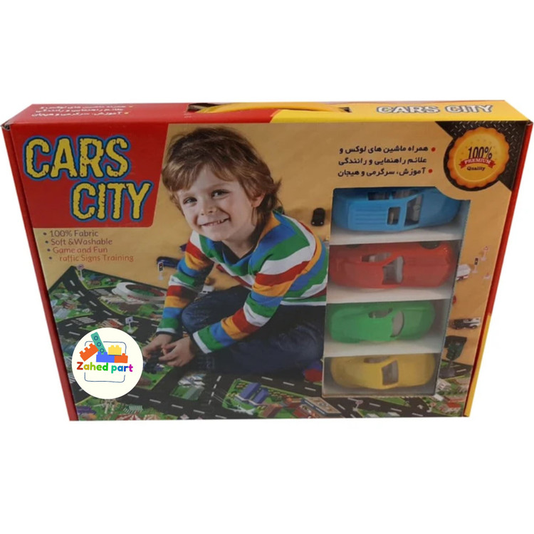 بازی شهر ماشین ها دارای یک پارچه طرح شهر و 4 عدد ماشین میباشد در این شهر پارچه ای ایستگاه آتش نشانی، ایستگاه قطار، مدرسه، دریا و پمپ بنزین و … همراه با ماشین های لوکس، علايم راهنمایی رانندگی، آموزش، سرگرمی و هیجان جای نمایی شده تا کودک با قوه خلاقیت و تجسم خود با ماشین های خود در این شهر رویا پردازی کند.