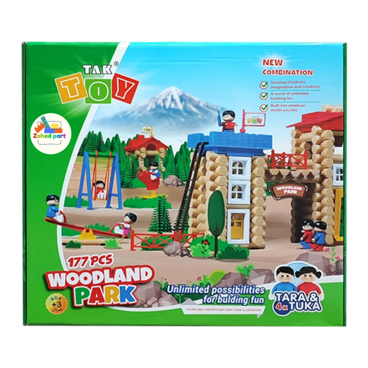 این اسباب بازی فکری آموزشی دارای 177 قطعه پلاستیک میباشد و دیوار ها شبیه چوب میباشند و سقف شیروانی و درب و پنجره نیز در این مجموعه میباشد. در زمین بازی نیز تاب، الاکلنگ و بسیار از اسباب بازی ها وجود دارد. در این مجموعه درخت و نردبان و نرده و پرچم نیز وجود دارد. با ساخت این قطعات در کنار یکدیگر می توان ساختمان برای بازی ساخت و حتی این دو خانه را به یکدیگر متصل کرد و شخصیت را درون این خانه ها قرار داد و بازی کرد. مدل مختلفی می توان با این قطعات ساخت و این باعث ایجاد خلاقیت در کودک میشود. این اسباب بازی باعث خلاقیت و رشد هوش کودکان می شود. این اسباب بازی برای کودکانه بالای 3+ سال طراحی و ساخته شده است که دارای کیفیت خوبی است.